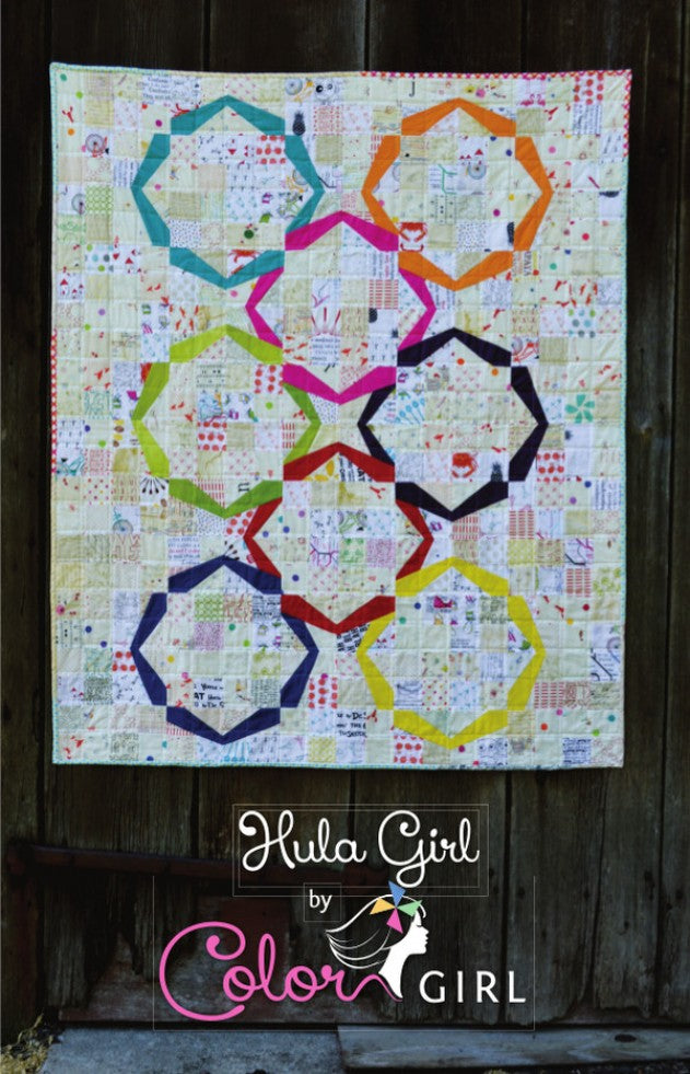 Choose a bundle of low volume scraps and a collection of favourite solids to piece this dynamic and modern version of the classic patchwork ring quilt. Pattern includes instructions to make a throw quilt that would be suitable for wallhanging baby or snuggling.